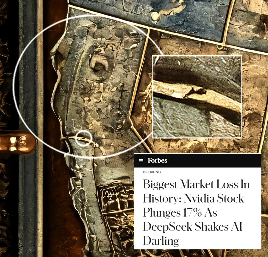 Remember when we first released The Map – we said watch California? Many immediately saw the Frown Face. Today – the historic 17% drop of NVIDIA stock. On the “frown face lips” is where NVIDIA’s home office is. Notice the “whale” there. Right there is the area of NVIDIA’s home office. The cause of the stock drop is DeepSeek. Their logo? A WHALE.